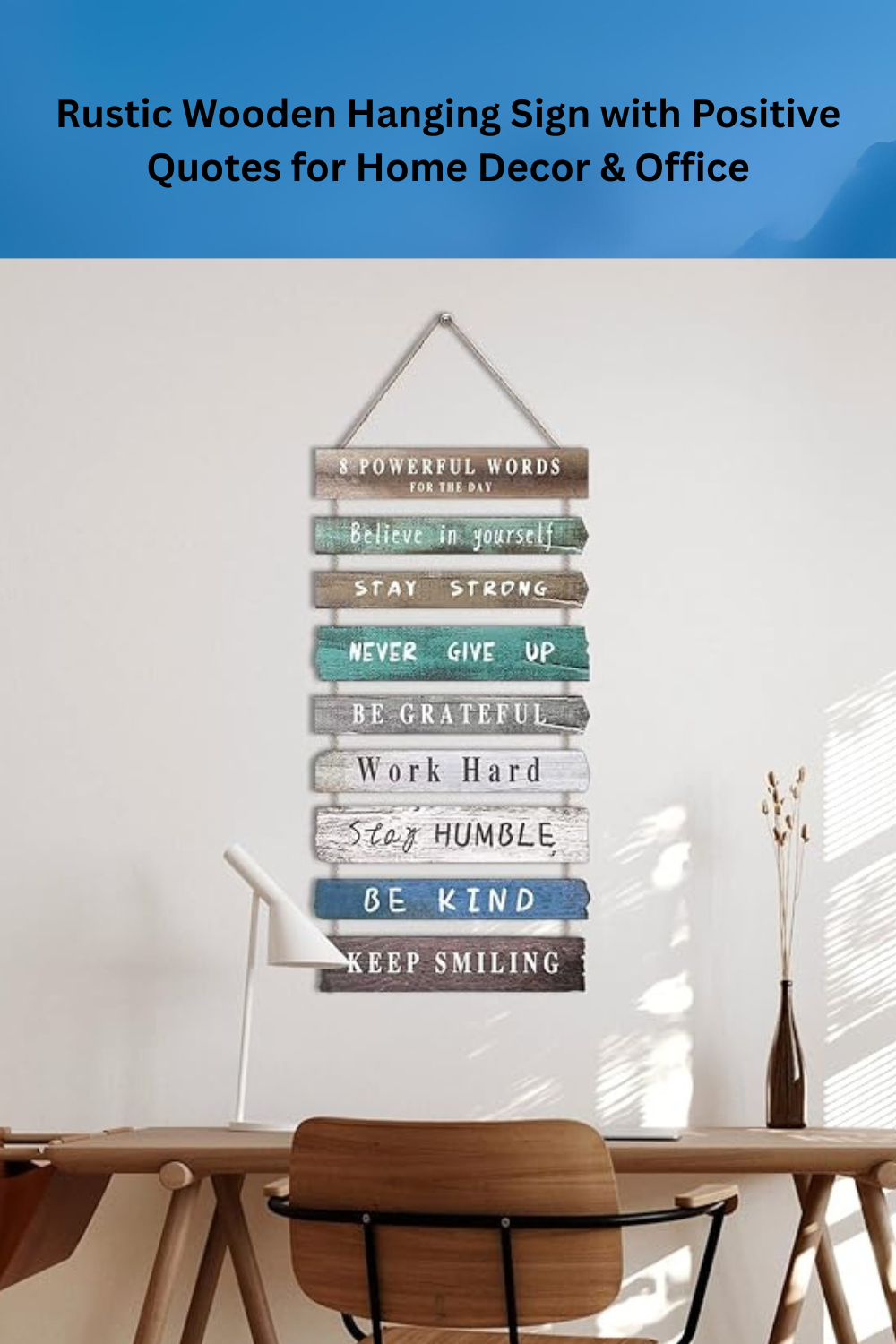 Inspirational Wall Art 12x24, Rustic Wooden Hanging Sign with Positive Quotes for Home Decor & Office
