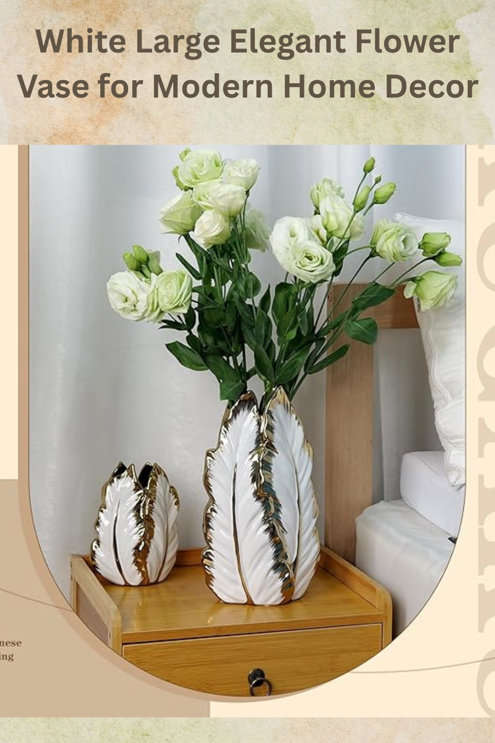 Nordic Light Luxury Gold Painted Ceramic Vase, White Large Elegant Flower Vase for Modern Home Decor