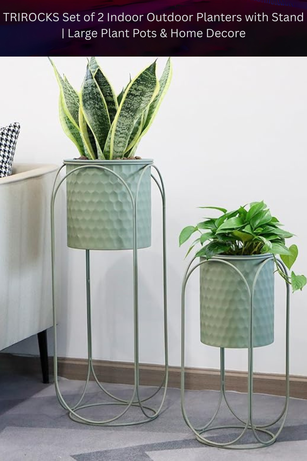 TRIROCKS Set of 2 Indoor Outdoor Planters with Stand | Large Plant Pots & Home Decore